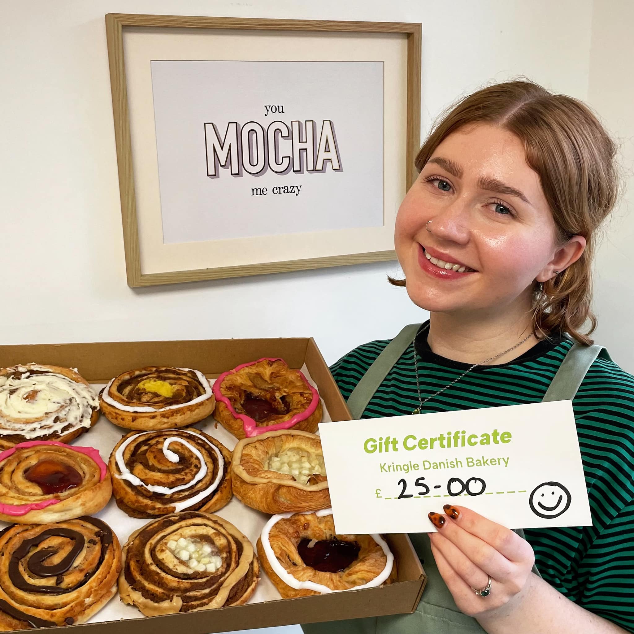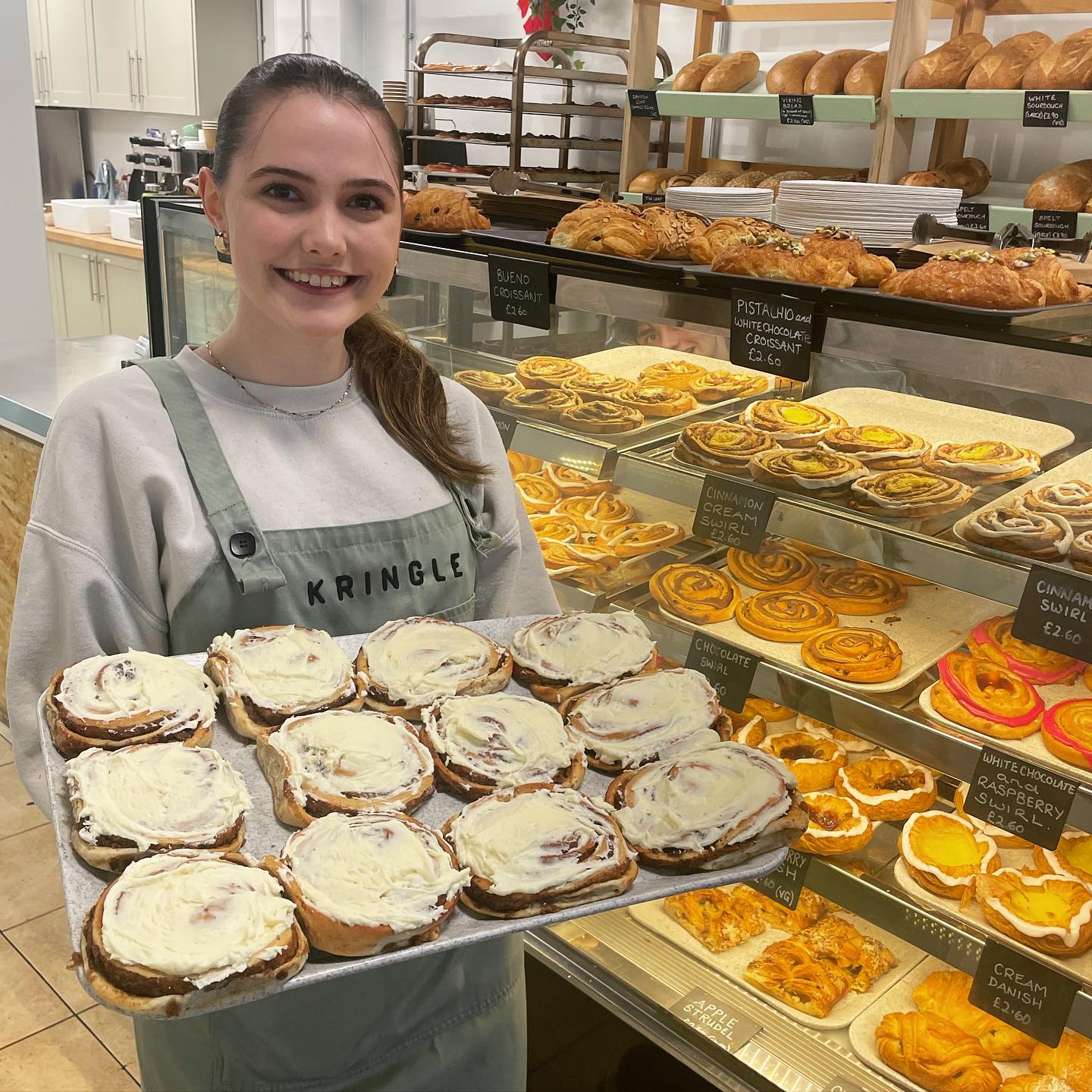 Welcome to Kringle Danish Bakery, a traditional, family-run bakery in Sheffield. With two convenient locations, we offer a delicious selection of pastries, cakes, and freshly baked bread every day. Try our famous swirls on Swirl Wednesdays and enjoy a signature pretzel sandwich with a cup of our tasty coffee. Vegan options also available.